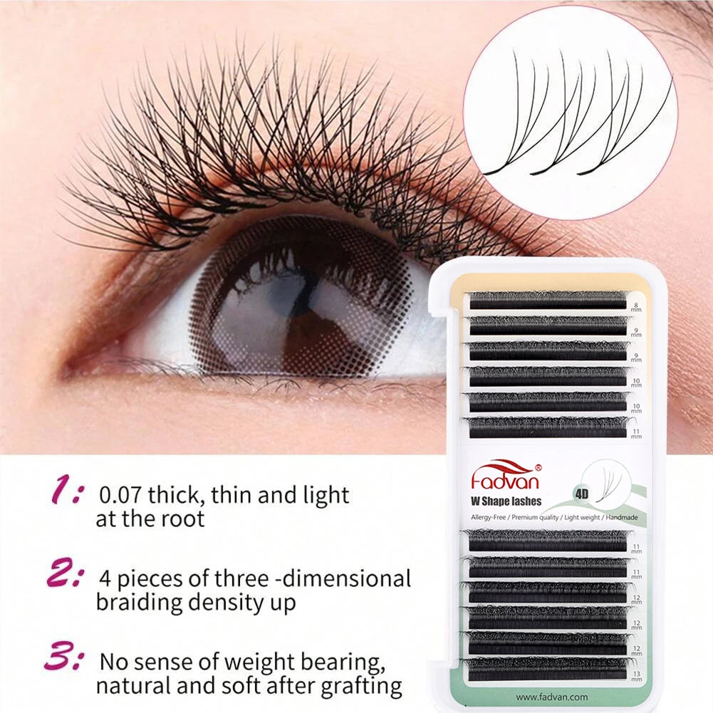 • Hand Made Process :Our Fadvan 4D W In Shape Eyelash Extension is hand made, ensuring a unique and high-quality product that caters to your natural beauty needs.