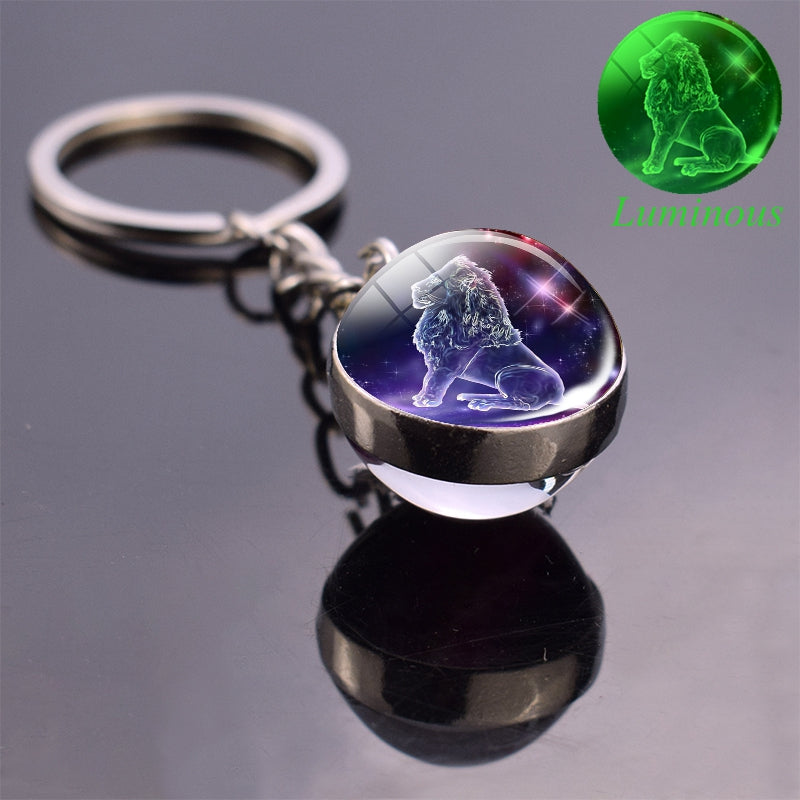 Luminous Keychain Glow In The Dark 12 Zodiac Sign Sphere Ball Crystal